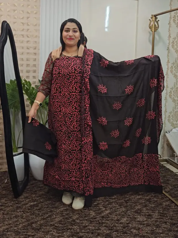 | Dupatta: | LENGTH:-2.5Mtr WIDTH:-1Mtr |